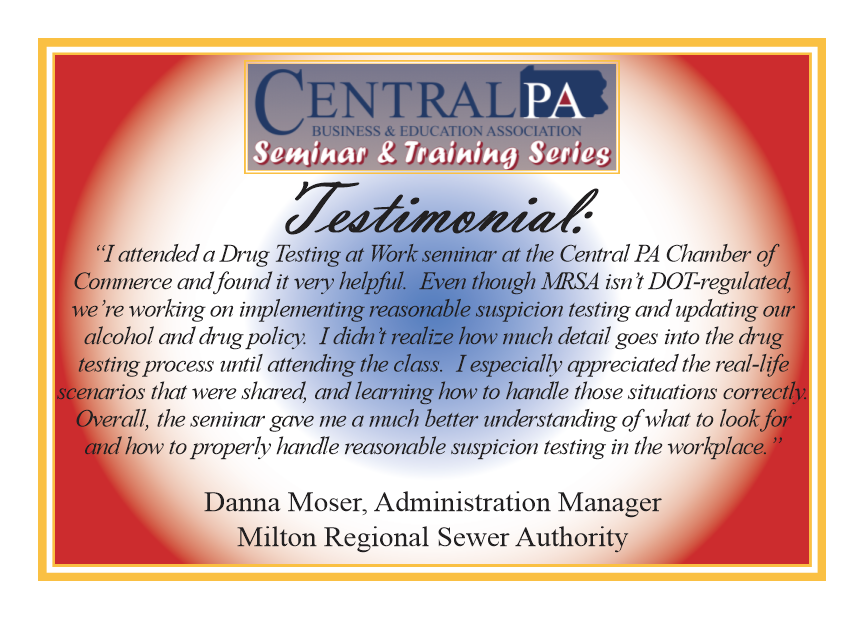 The Seminar & Training Series is designed to provide short but impactful educational opportunities for members and employees of businesses and organizations alike. The courses are relevant to today’s needs, including technology, marketing strategies and much more. B&E partners with Central PA Chamber members to conduct the classes. If interested in leading a class, e-mail tjaikey@centralpachamber.com or call 570-742-7341. For the latest class information, and to register, click here!