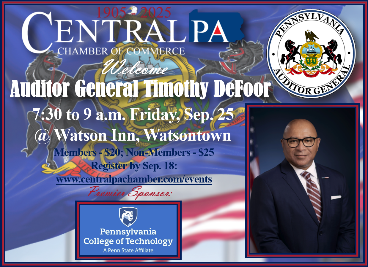 Legislative Events provide an opportunity for Central PA Chamber members and the general public to meet federal-, state- and county-elected officials, and to hear about issues affecting the community and specifically the business climate. The event begins with a breakfast buffet at 7:30 a.m., followed by the sponsor presentation and speaker at 8. The event ends at 9. There is a fee to attend, and registration is required.