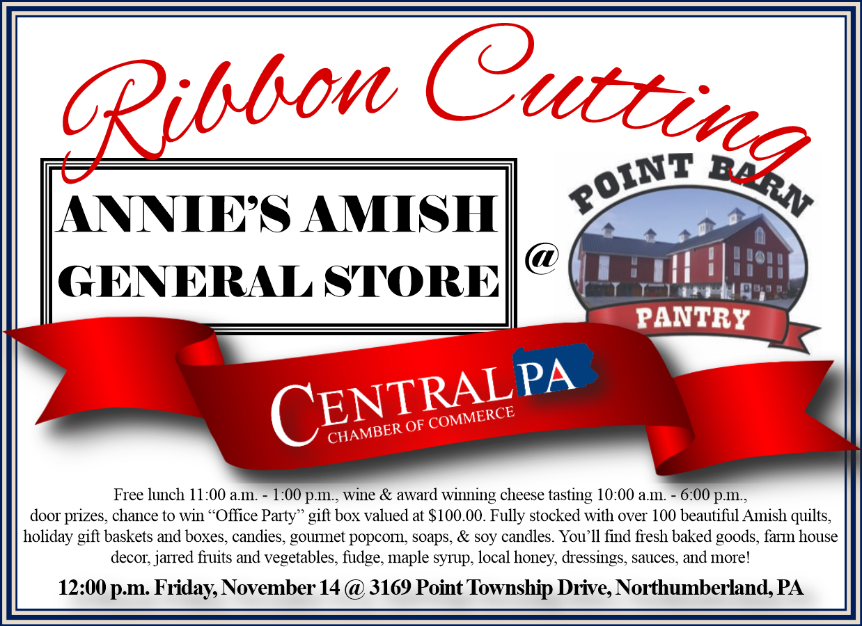 Ribbon Cutting: Annie’s Amish General Store Ribbon Cutting: Annie’s Amish General Store October 8, 2025 Teajay Aikey Details Price Qty Free Ticketshow details +hide details - $0.00 USD Quantity 0 1 2 3 4 5 6 7 8 9 10 Details Sale Dates - The dates when this option is available for purchase. Goes On Sale: November 16, 2023 1:15 pm Sales End: November 13, 2025 12:00 pm Access - This option allows access to the following dates and times. Date Time Sold Remaining TotalSold Total SpacesLeft Ribbon Cutting November 14, 2025 11:00 am to 1:00 pm 0 200 0 200 please do not enter anything in this input Ribbon Cutting November 14, 2025 11:00 am - 1:00 pm Related Venue: Annie's Amish General Store Address: 3169 Point Township Drive, Northumberland, PA - Pennsylvania, 17857, United States 0 0 Older Seminar & Training: AI Made Simple Comments (0) Leave a reply Click here to cancel the replyYour email address will not be published. Required fields are marked *CommentName * Email * Website Save my name, email, and website in this browser for the next time I comment. Δ
