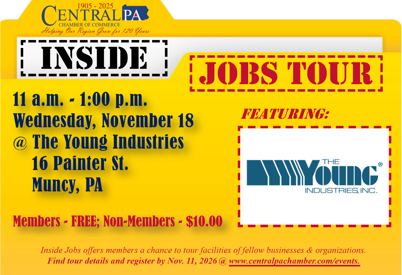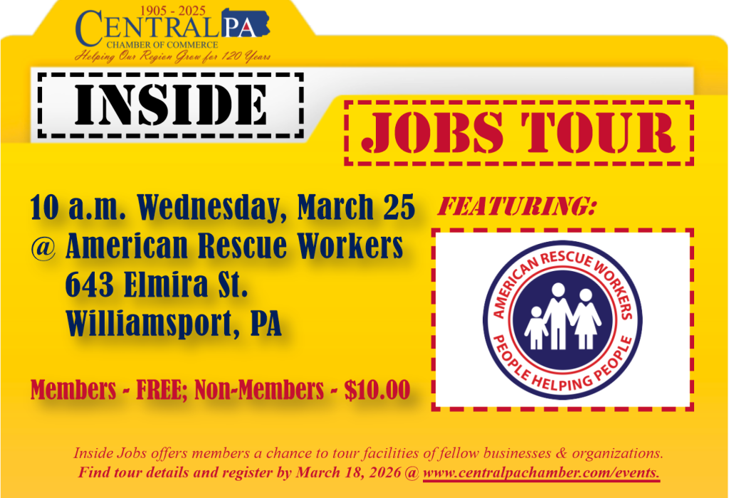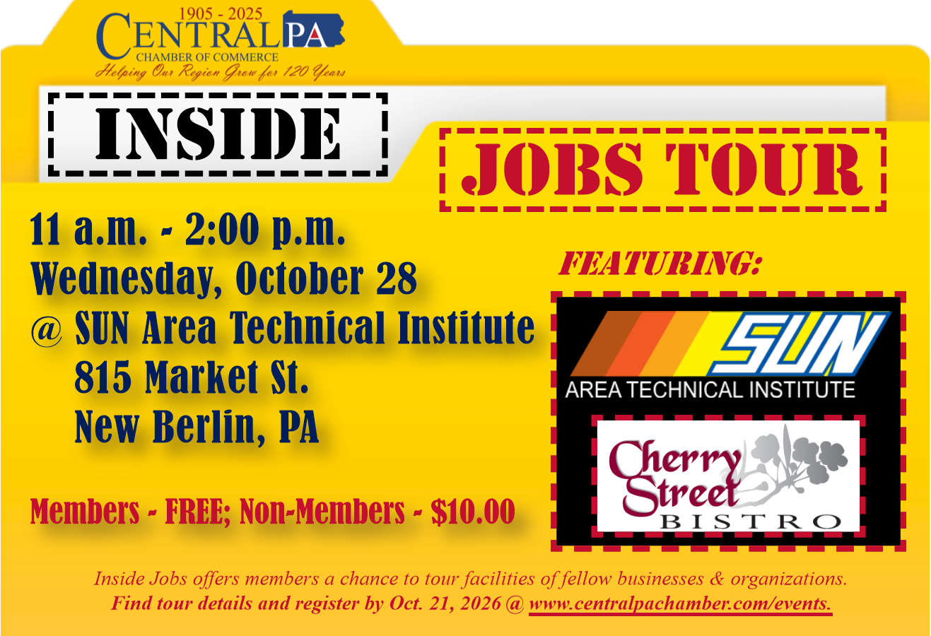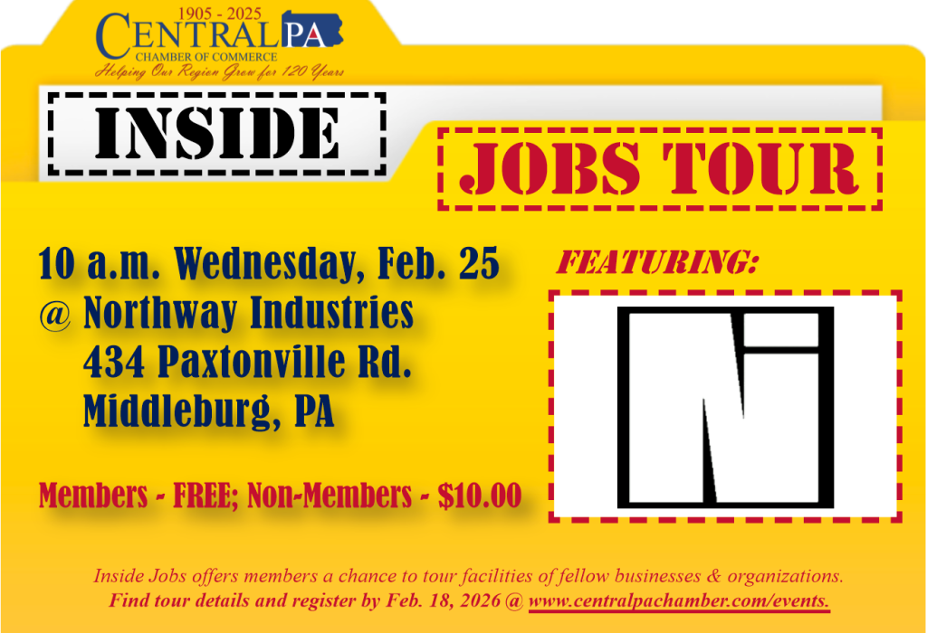 Consider promoting your organization by providing an Inside Jobs Tour to fellow members of the Central PA Chamber of Commerce! This is a way to raise your community profile and possibly gain new clients and business connections.