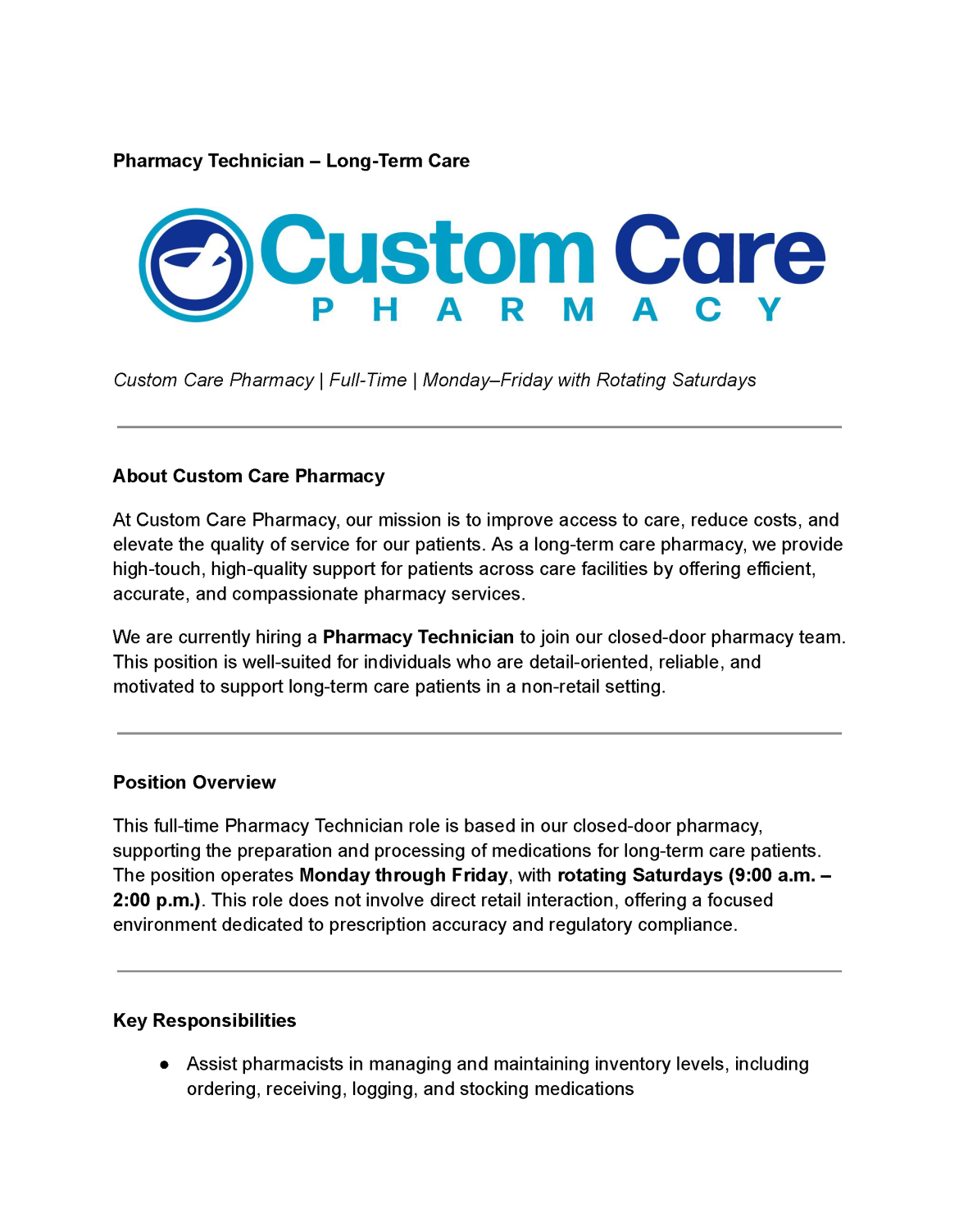 Pharmacy Technician Help Wanted – Long-Term Care_Page_1 Pharmacy Technician Help Wanted – Long-Term Care_Page_1 August 6, 2025 Ryan Workman 0 0 Comments (0) Leave a reply Click here to cancel the replyYour email address will not be published. Required fields are marked *CommentName * Email * Website Save my name, email, and website in this browser for the next time I comment. Δ